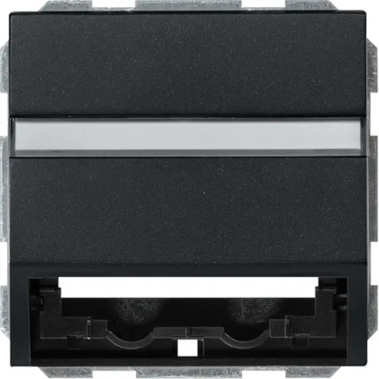 Universelle Datakappe mit Tragring und Beschriftungsfeld, geeignet für Einsteckeinheiten für Daten- und Kommunikationsanschlüsse, IP20. Ohne Einsteckeinheit, Bürste und Abdeckrahmen. Serie: System 55, Farbe: schwarz matt.