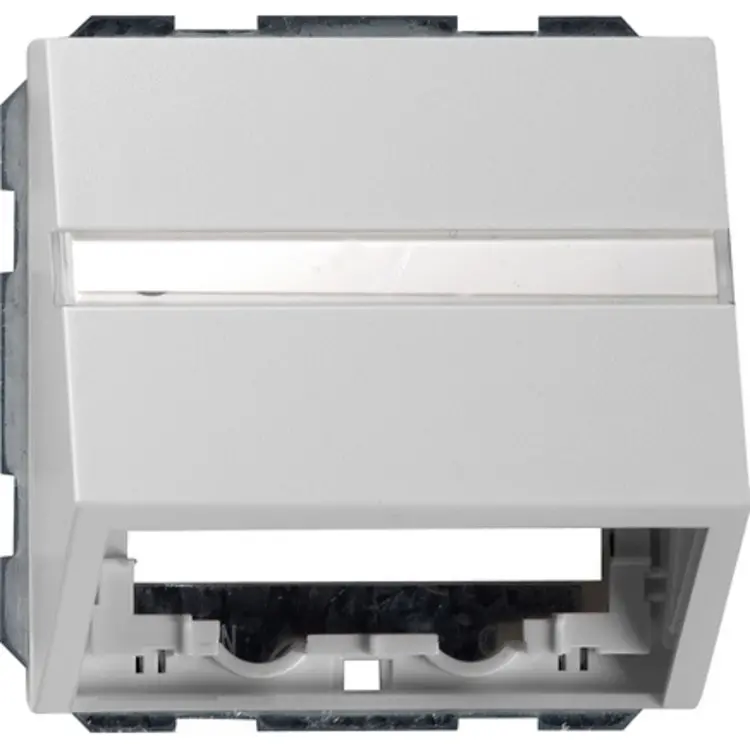 Universelle Datakappe mit Tragring und Beschriftungsfeld, geeignet für Einsteckeinheiten für Daten- und Kommunikationsanschlüsse, IP20. Ohne Einsteckeinheit, Bürste und Abdeckrahmen. Serie: System 55, Farbe: grau matt.