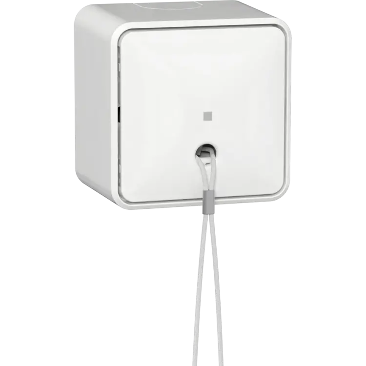 Aufputz-Zugschalter mit interner Montageplatte für 1-polige oder Wechselschaltungen, 10 AX / 250 V~. Geeignet für Wand- und Deckenmontage. Farbe: weiß.